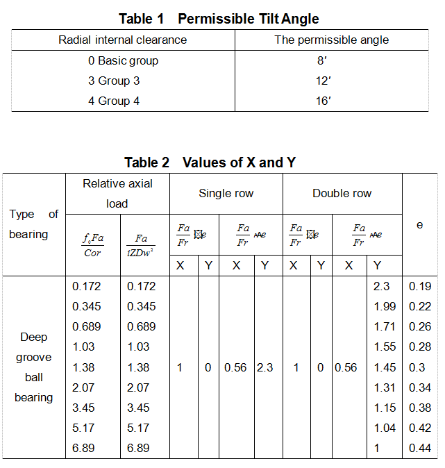 Deep groove ball bearings permit tilting angle between the inner ring and outer ring. The details are listed in the Table 1.