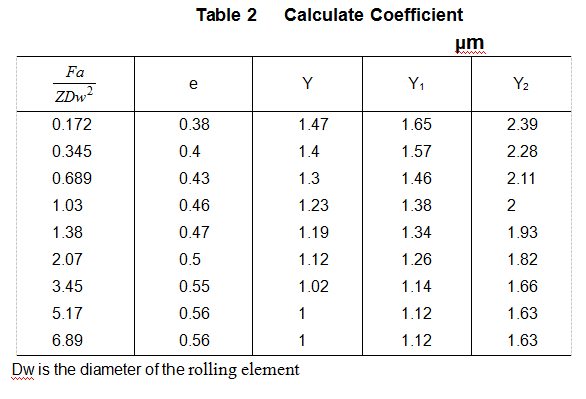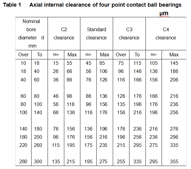 Axial clearance of Four-point contact ball bearings is listed in table 1.